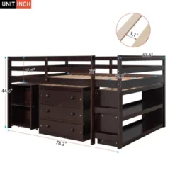 Full Size Wooden Loft Bed With Shelves And Desk – ModernLuxe