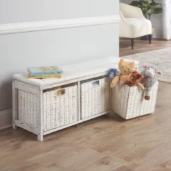 Badger Basket Kid's Storage Bench With Woven Top And Baskets White