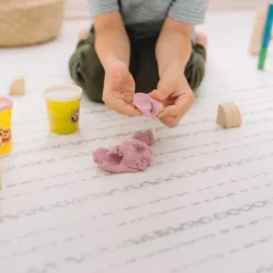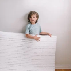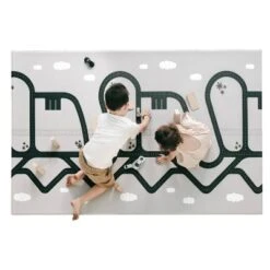 The Ruggish Lola Play Rug is a timeless piece that elevates any space with style and functionality. Designed to be the size and look of a standard area rug, this sleek, versatile play rug includes a memory function that provides more cushion than foam tiles. Plus, it’s durable, waterproof, and easy to wipe and clean. Created by a mom in California, this 2-in-1 rug showcases muted gray-and-white tones that complement all decors — from modern to mid-century to traditional. Simply flip it over to reveal Ruggish’s signature interactive road map design on the underside and get your kid’s imagination running wild. Great for working out or napping, this rug is free of BPA, phthalate, lead, latex, formaldehyde and EVA. It’s also great for your pets to enjoy (but not “pet-proof,” see Cleaning, Care and FAQ for more information).