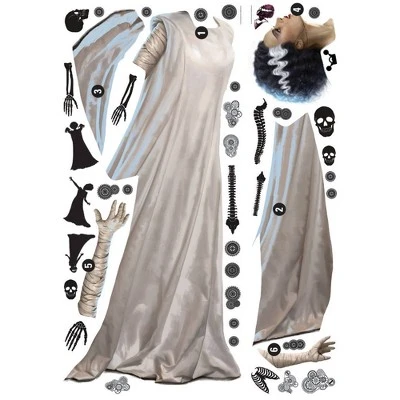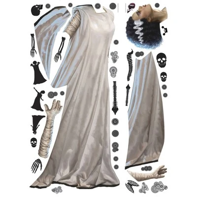 Classic monsters fans will definitely enjoy this officially licensed Universal Monsters The Bride of Frankenstein wall decal. This Bride of Frankenstein decal is perfect for Halloween decorating or, if you are indeed a true monster fan, year-round. Included are a bunch of smaller bonus decals that can be placed around your Universal Monster Bride of Frankenstein decal or onto any smooth surface. The decorating possibilities are endless. Made with a high-quality vinyl and an adhesive that won t leave residue behind, you can remove these peel and stick wall decals and reuse them the next year (simply place them back on the original liner sheet). Look for the entire line up of Universal Classic Monsters Wall Decals from RoomMates and collect them all!