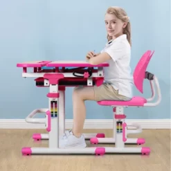 Are you looking for a study table set for your kids? This is our functional children’s desk and chair, providing fun and safety for children in different ages. Made of premium materials, this set is sturdy and safe. Horizontal foot design and non slip foot mats provide maximum stability of desk and chair. A hook on the side of the table allows you to hang a backpack or water bottle. The height of the whole desk and chair can be adjusted as child growing up. This desk is equipped with a large adjustable tilt table top and sliding out drawers, which not only provides unparalleled convenience, but also keeps the learning supplies in order. Our student table is your best choice! It can help children correct their posture, protect their eyesight and develop good study habits.