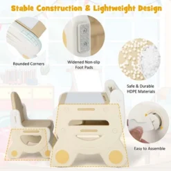 - Multifunctional Kids Table & Chair Set: With an ergonomic chair included, the toddler table set helps kids develop a good sitting habit. Apart from drawing, children can also do homework, read, play with toys or eat as needed. Moreover, the cute appearance appeals to kids a lot, which is suitable for kids aged 3-8 years old.