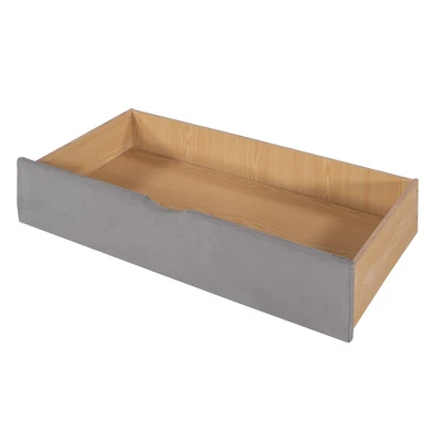 A perfect space-saving solution for multi-child families. A full bed combined with two twin beds, this triple bunk bed provides a convenient and flexible arrangement option for large families and sleepovers by taking advantage of vertical space. A gray finish enhances the smooth lines and adds a contemporary feel to any room set aside for multiple to sleep. Crafted with pine wood and plywood, this triple bunk bed is sturdy and durable to withstand the test of time. The angled ladder allows you to easily access the upper bed. Sturdy guardrails protect you as you sleep through the night. Ample storage space is provided by the two large drawers under the lower beds. This set works perfectly as a stacked full over twin & twin unit or divided into three separate beds. You can choose the combination method based on your own needs.