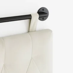 - For an industrial look, use the sturdy black metal rail to hang your button-tufted headboard.