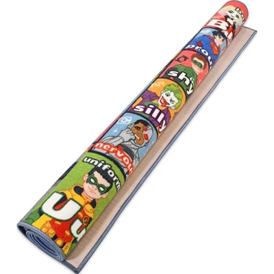 Officially LicensedKC Cubs joins with your favorite superhero and villians to immerse your kids with the ultimate learning experience. Make your child’s space a little more looney with this fun and playful rug featuring their favorite DC Comics characters. Your kids will love nothing more than to join Superman, Batman, Wonder Woman and their friends to learn about the ABCs and the traits & emotions that make them great. Designed to introduce many of the concepts young children are excited to learn about, create even more opportunities for learning through play with our educational rugs!Super Hero VibesHave your child feeling like a Super Hero everyday by repeating the affirmation of I Am A Hero Because I Am with any of our positive traits. This Justice League alphabet rug is the perfect blend of education and entertainment, featuring beloved DC Comics characters alongside important emotions and traits. Make learning fun and interactive with this colorful and educational Justice League alphabet rug, featuring a variety of emotions and traits to help your child develop important social skills.Make learning and playtime more fun with our adventure-filled educational kids rugs!KC Cubs Educational and Learning Game Rugs are carefully designed to stimulate your child’s curiosity, giving them opportunities to learn while playing with all of their favorite toys making them the perfect addition to your child’s learning experience! Harness the power of learning through play!Our rugs will help your child simultaneously learn and grow their imagination. From sounds to colors to animals we have it all. So, whether you want to help your child identify numbers and learn to count or if you’re ready to take them on a tour of the universe, there’s a rug that will help you do just that. Designed with the help of early childhood educators and parents, you won’t find rugs like this anywhere else. Not only are these rugs attractive and colorful, but they are also safe for use in schools and daycares as they meet the standard for surface flammability.Have fun while teaching your young ones!Whats better than unlocking you inner child and having an adventure with your favorite little ones. KC Cubs rugs promote interactive play and make-believe game play. Join parents around the country who are embracing the power of educational play with KC Cubs Rugs! Find the rug that’s right for you and your child and let the fun begin! They also are a great fit for any preschool, kindergarten, elementary school, daycare, or library with the 8 x 10 size. Add a splash of color and excitement to the children’s learning journey with KC Cubs educational rugs! Our Play + Social Skill Rugs also help kids form friendships by having them learn to share by taking turns in creating adventures and devoloping their communication skills by making them conversate with other kids.