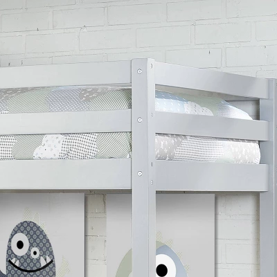 The Hillsdale Kids and Teen Caspian Twin Study Loft is the perfect combination of simplicity and style. The simple slat style features a built-in desk under the twin bed, the perfect space for your child to work on homework or special projects. The ladder allows easy access for to the top bunk and the coordinating chair perfectly fits the desk. Set includes a hanging night stand that can be used at any end for the bunk bed for any night time needs. Featuring a neutral gray finish, this wood loft is the perfect addition to your kids room. Includes Twin Study Loft, Desk Chair and Hanging Night Stand. Requires two twin mattresses; not included. Assembly required.