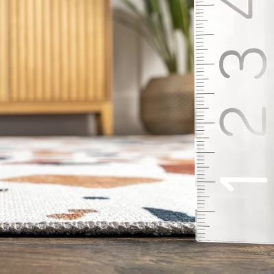 Life just got a little easier with this geometric machine washable area rug! Made from sustainably-sourced premium synthetic fibers, our machine-washable rugs are spill and stain resistant making it perfect for those with kids and pets. When that inevitable stain happens, roll your rug up and place it in your washing machine! Hang dry and simply put your rug in the desired place, with no rug pad required with our innovative non-slip backing. Kick back and relax with our easy to care for and pet-friendly area rugs.