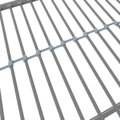 Make the most out of a small footprint with the Room & Joy Betony Twin/Twin Bunk Bed with Storage Bins. This bunk bed is the ultimate in-space saving design for every growing family with limited floor space. Designed with a modern flair, its clean-lined silhouette perfectly matches any décor. The bedframe is constructed with a sturdy metal frame with full-length guardrails, 2 integrated ladders and secured metal slat base that ensures stability for the sleeper and air circulation for the mattress. Designed to accommodate 2 twin mattresses (sold separately) and no foundation required, just top each bunk with mattresses and sleep the night away. What’s more, the under-bed clearance is fully optimized with six handy containers that provide you ample storage for the kids’ books, toys, and extra clothes. The Room & Joy Betony Twin/Twin Bunk Bed will accompany your little ones through their growth and learn for years to come!