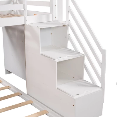 - [Storage Staircase]Save space while giving your children’s bedroom an extra bonus of fun with this bunk bed. The attached staircase can be used for daily necessities.